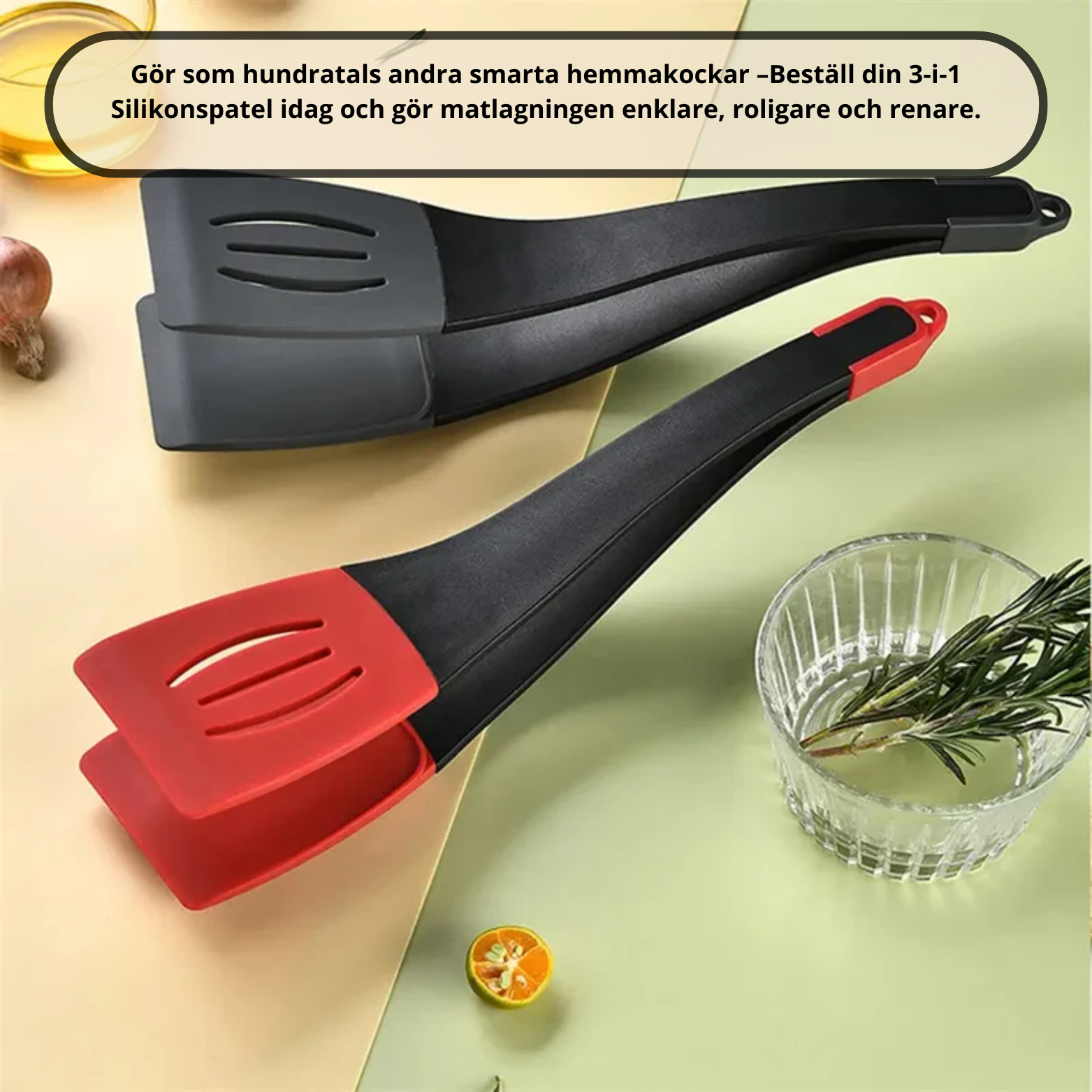 Letar du efter ett smart och praktiskt köksredskap? Vårt 3‑i‑1 köksredskap kombinerar silikonspatel, kökstång och serveringssked – allt i ett! Perfekt för både vardagsmatlagning och grillning.