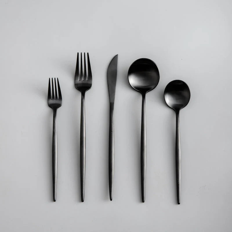Tillverkad i rostfritt stål med en elegant matt finish i titanlegering, kombinerar detta set hållbarhet med modern estetik.