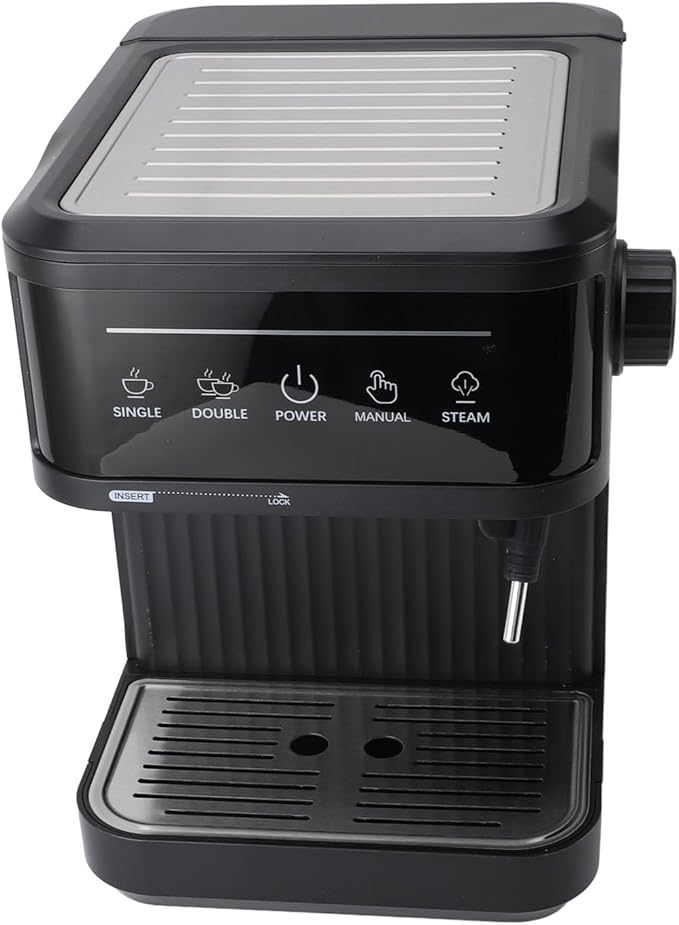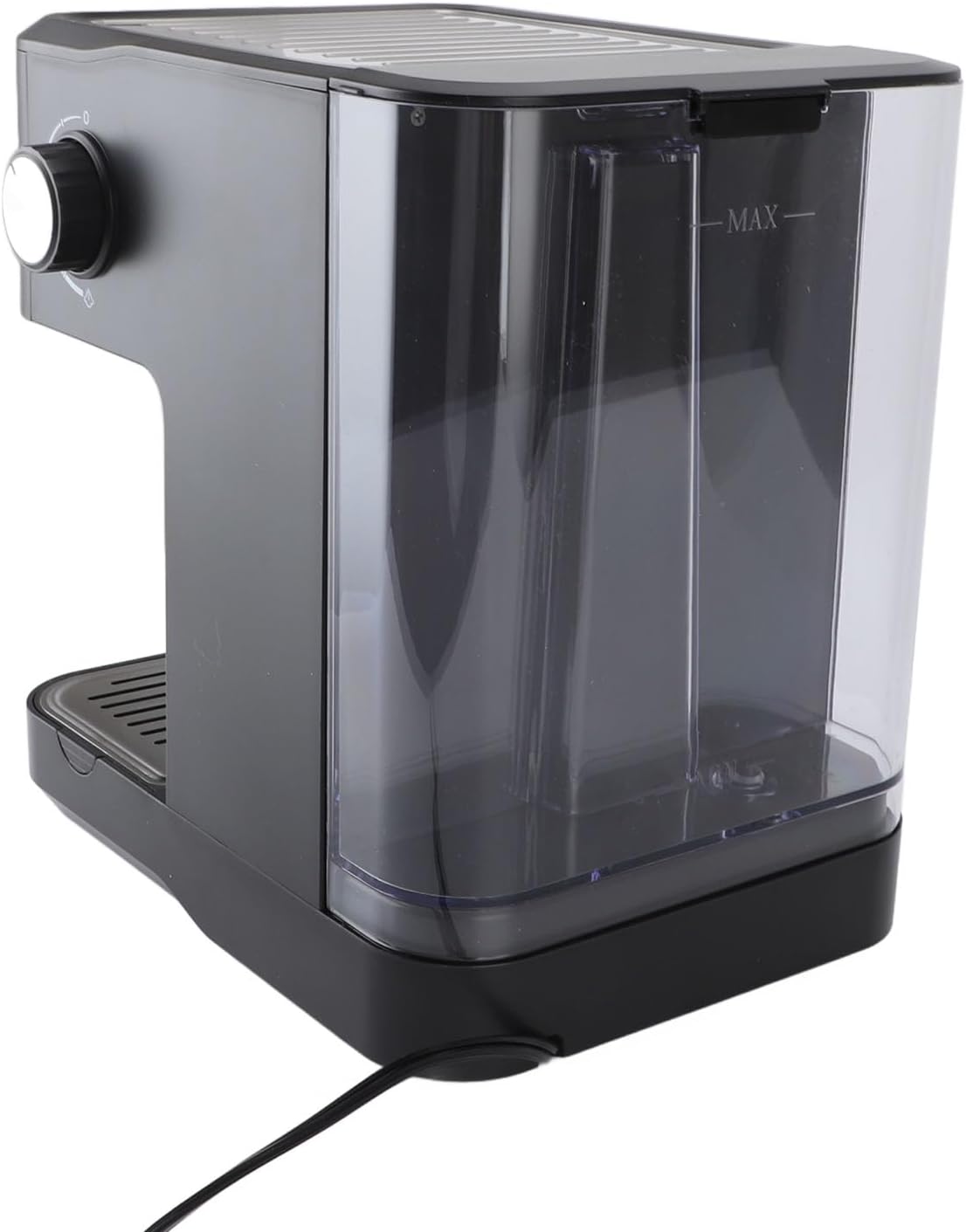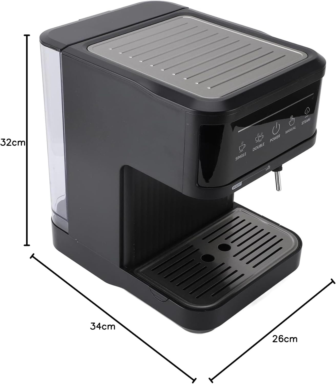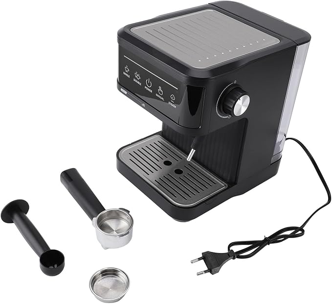 Upptäck vår stilrena halvautomatiska espressomaskin med 850W effekt och 1,5L vattentank. Den är utrustad med manuell ångfunktion, mjölkskummare och tydlig knappstyrd LCD-display – perfekt för att göra espresso, cappuccino eller latte som en barista direkt i ditt kök. Med en kapacitet på 5–10 koppar och kompatibel för 200–240V gör den både vardag och helg extra njutbar. Designad i slitstark plast och metall, med energieffektivitetsnivå 1 och en stilren svart färg. Perfekt för hemmet, kontoret eller som present!