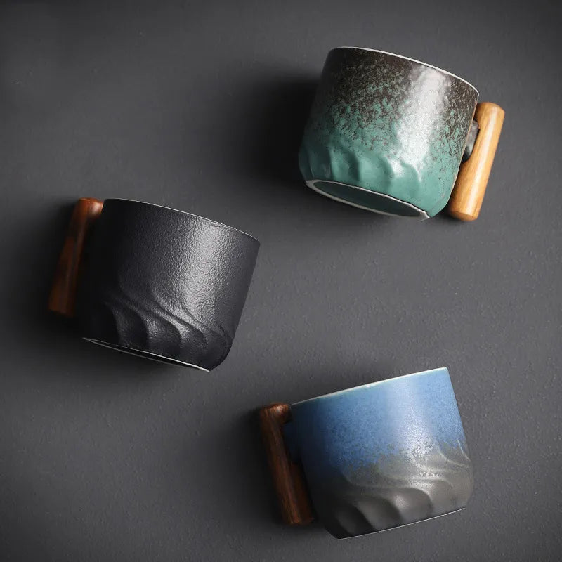 Den kompakta storleken på 70 ml gör koppen perfekt för espresso, cortado eller kaffe, medan det ergonomiska trähandtaget ger en varm och behaglig känsla i handen.