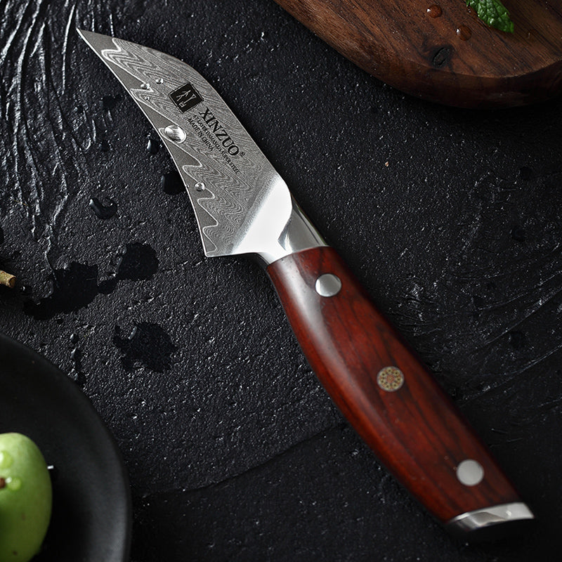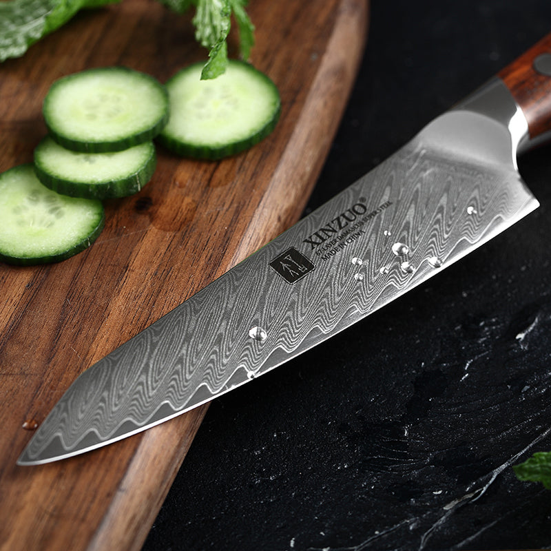 Upplev hantverk och precision med vårt exklusiva kockknivset äkta Damaskusstål. Setet innehåller fem olika knivar med bladvinkel i japansk stil (15°) för optimal skärpa och kontroll. Handtag i naturligt massivt Dalbergia-trä ger perfekt balans, medan det medföljande knivstället i akaciaträ erbjuder elegant och säker förvaring. Med en hårdhet på 60±2HRC är dessa knivar både slitstarka och vassa nog för professionell användning. Passar perfekt som daglig köksinvestering eller present till matälskare.