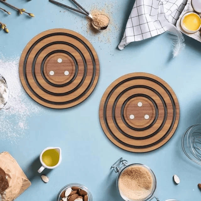 Passar utmärkt som serveringsunderlägg, runt träunderlägg för grytor, eller som elegant dekoration. Lätt att rengöra och designat för att hålla i många år framöver.