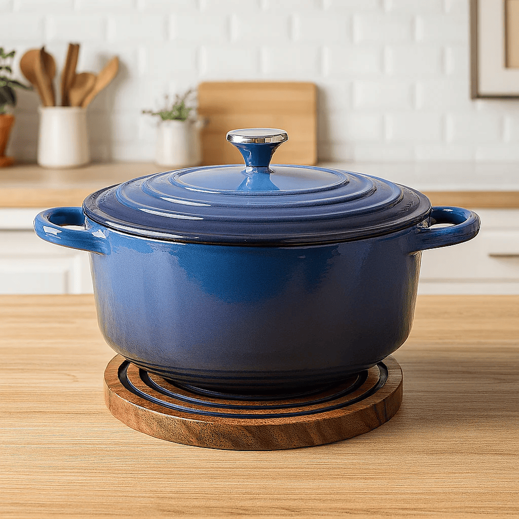 Detta eleganta underlägg i trä kombinerar stil och funktion. Tillverkat i hållbart akaciaträ och utrustat med en silikonkant som ger ett halkfritt grepp, är det här värmetåliga grytunderlägget ett måste i varje kök.