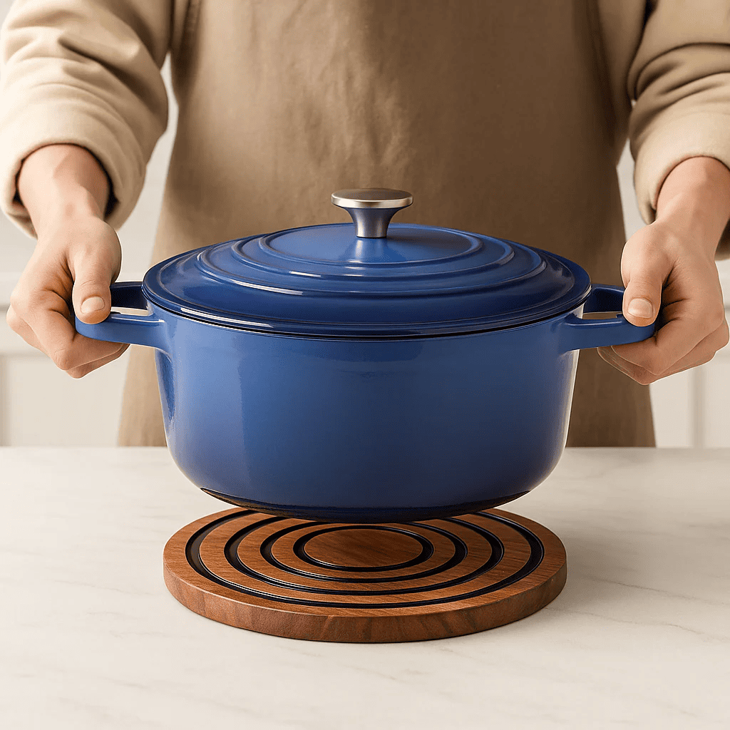 Den magnetiska basen ger extra stabilitet och gör att det kan fästas på metalliska ytor. Perfekt för både matlagning och servering – skydda dina ytor samtidigt som du lyfter din köksinredning. Ett köksunderlägg som är både praktiskt och dekorativt.