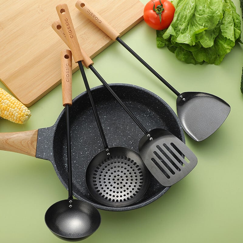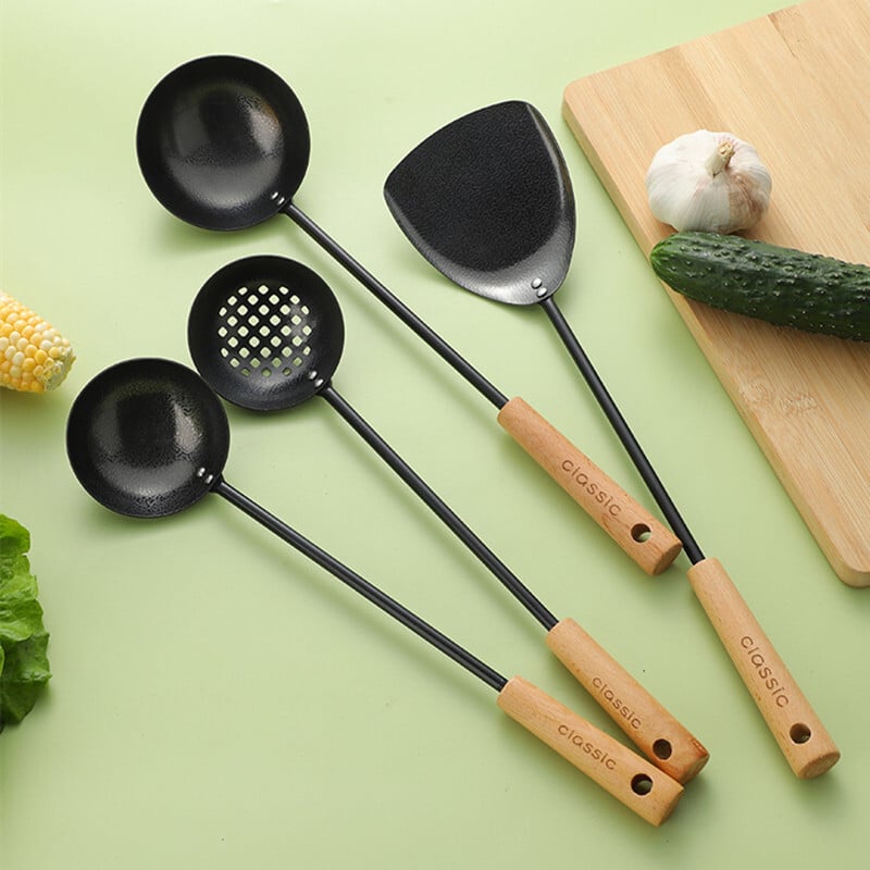 4-i-1 set – stekspade, soppslev, hålslev & wokspade.