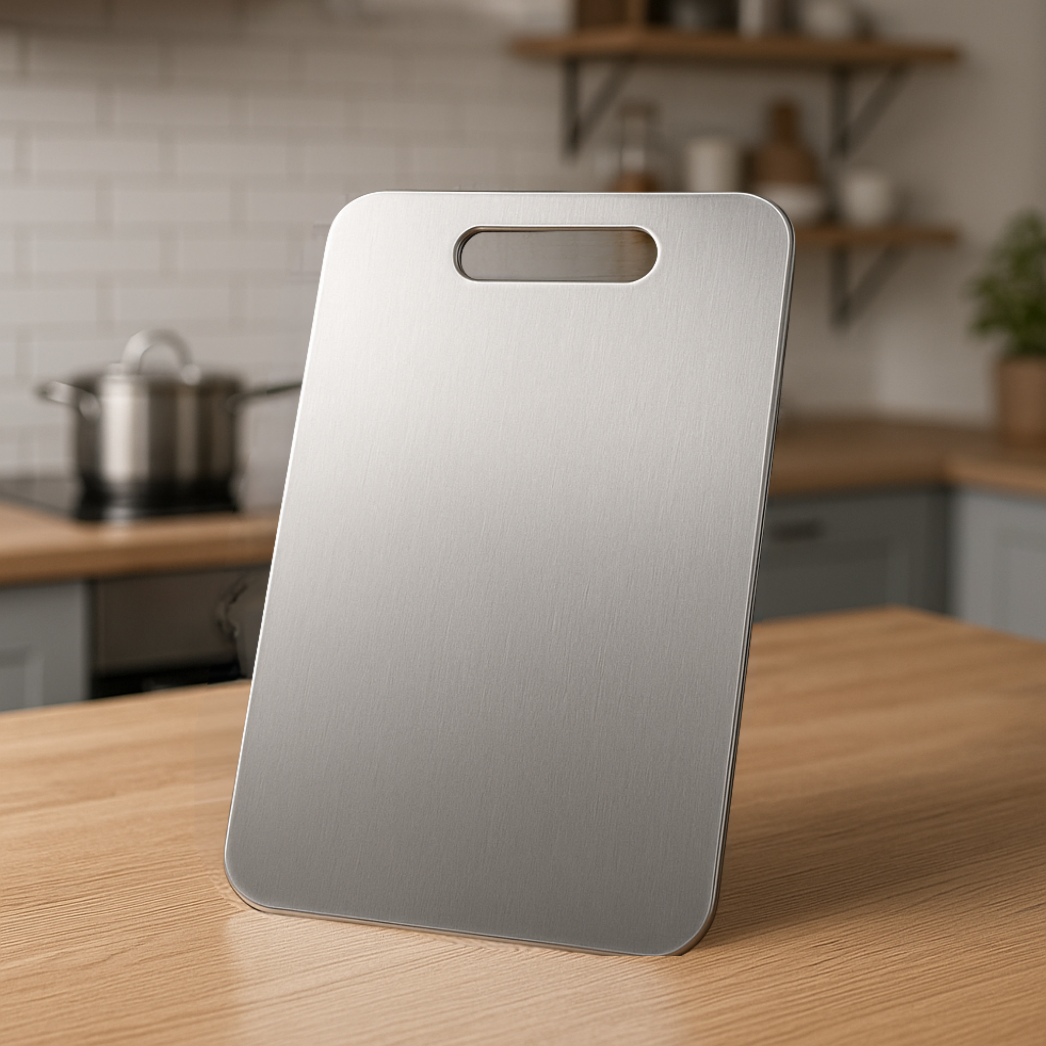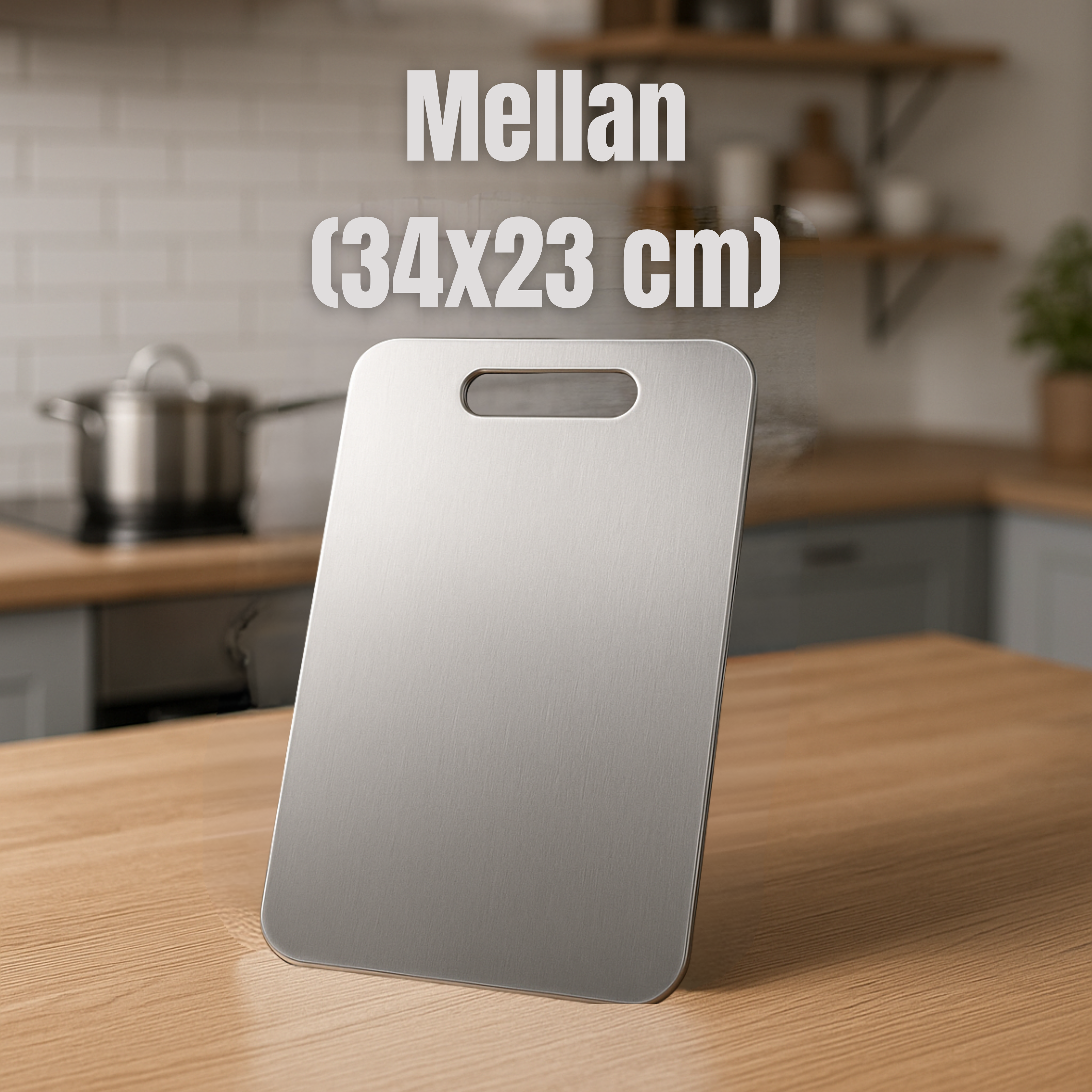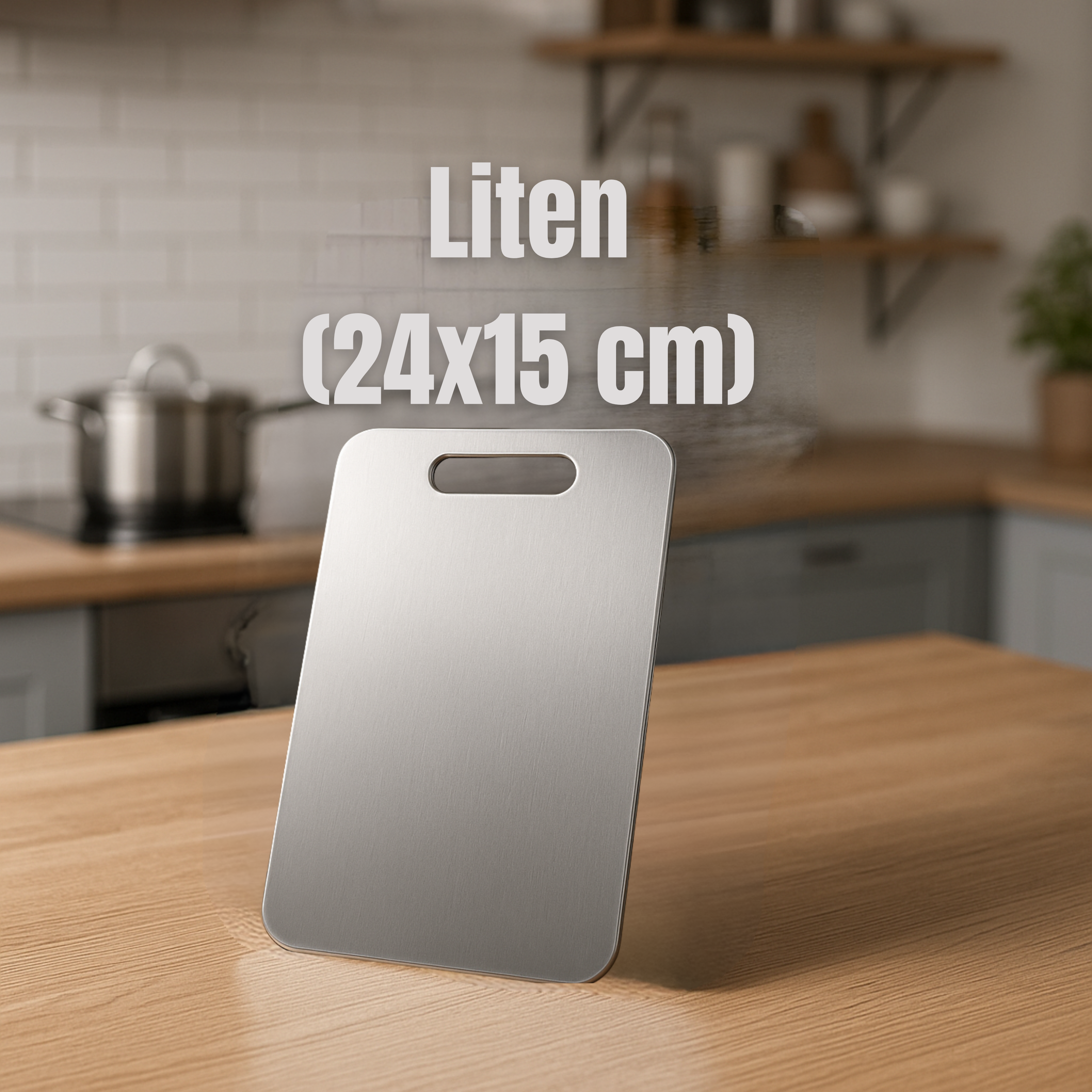 Uppgradera ditt kök med Titan Pro – en antibakteriell skärbräda i rostfritt stål. Med en icke-porös yta som motverkar bakterier och lukt, är den både hygienisk och extremt slitstark. Välj mellan tre storlekar för alla typer av matlagning. Skonsam mot knivarna och lätt att rengöra – handdisk eller diskmaskin. Ett hållbart och miljövänligt val för moderna kök.