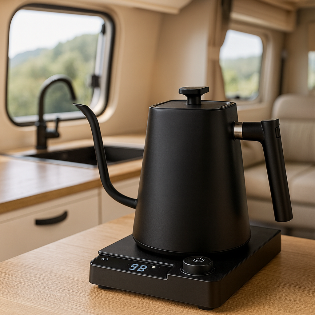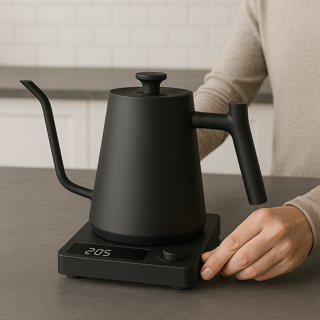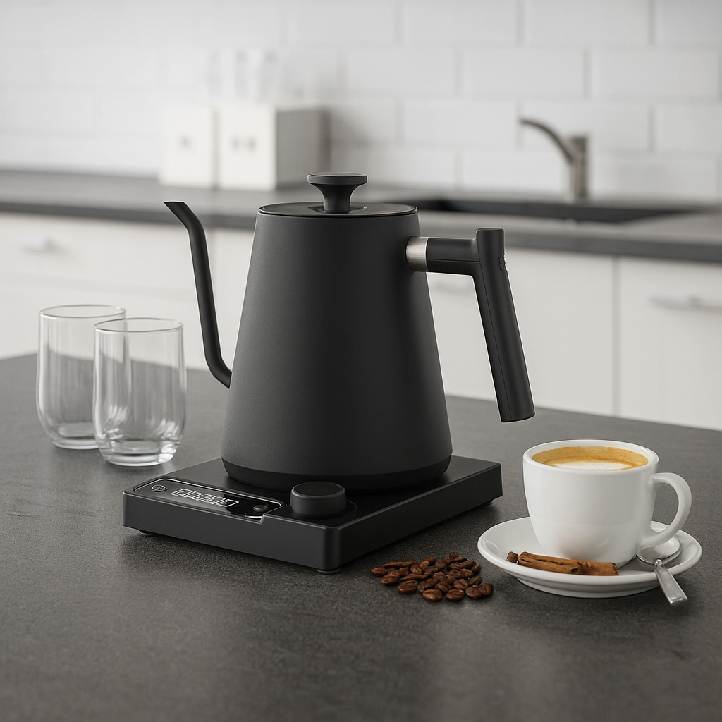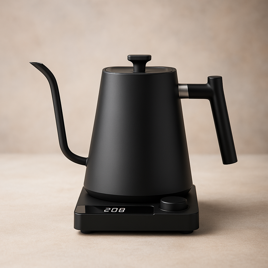 Elegant och energieffektiv elektrisk vattenkokare med justerbar temperatur mellan 40–100 ℃. Kapacitet 150–1000 ml, perfekt för 1–2 personer. Tillverkad i 304 rostfritt stål och ABS-plast med högtemperaturbeläggning. Funktioner inkluderar temperaturreglering, isolering, inställning av isoleringstid (1–24 timmar) och automatisk avstängning för säker användning. Passar för pour over-kaffe, te och uppvärmning av andra vätskor. Gooseneck design ger exakt hällkontroll. Energieffektivitetsnivå 2 och chassiuppvärmning på 1200W ger snabb uppvärmning.
